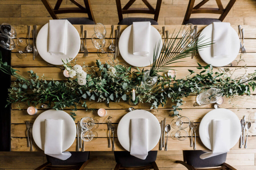 - Wesele rustykalne, boho: prostokątne stoły z naturalnymi dekoracjami